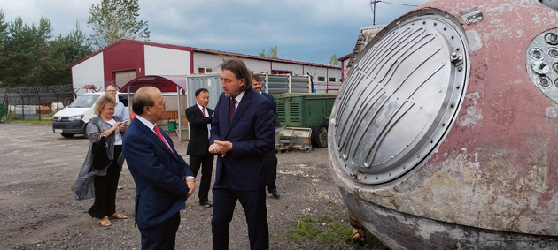 Евгений Сергеевич также продемонстрировал лаосским друзьям капсулу космического аппарата, в которой накануне полета Гагарина спустились из космоса собака и манекен. Капсула будет установлена в центре Киржача.