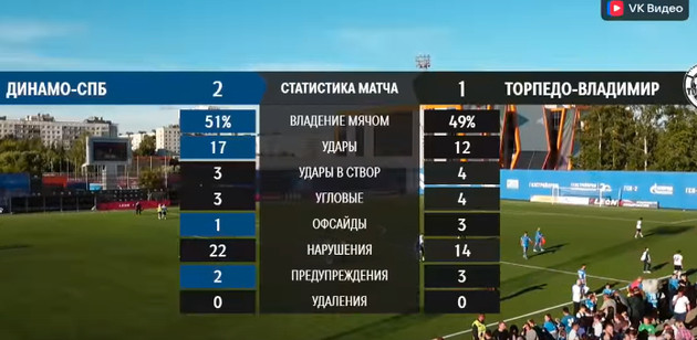 Последние 10-12 минут «Торпедо» провело в атакующем ключе. Но только под конец встречи удалась мощная атака «Торпедо», которую завершил мощным ударом Вильдан Ермилов - мяч от перекладины попал в сетку – 2:1. Это окончательный счет матча в пользу «Динамо» (Санкт-Петербург).