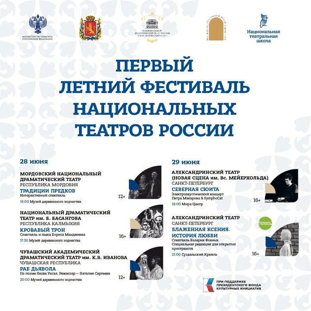 II Конгресс Национальных театров России и Первый Летний фестиваль Национальных театров России проводятся при поддержке Президентского фонда культурных инициатив, Правительства Владимирской области, Владимиро-Суздальского музея-заповедника.