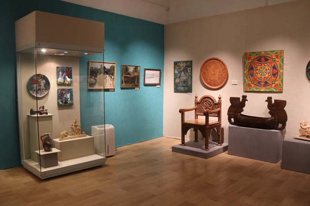 «Идея выставки возникла в тот момент, когда мы с коллегами стали обсуждать, есть ли в современном мире продолжение народному искусству, есть ли место традициям, заложенным в XVIII-XIX вв. На примере известной семьи Мамонтовых мы показываем, что все это живет и сейчас, обретая новые грани. Выставка условно делится на три раздела: конец XIX в., середина XX в. и современные художники XXI в. Начало посвящено работам участников «Мамонтовского художественного кружка». В том числе речь идет о столярной и гончарной мастерской. В то время владельцем усадьбы был Савва Иванович Мамонтов. Его замечательная жена Елизавета Григорьевна очень интересовалась народным искусством. Они создали небольшой музей, в который собирали предметы крестьянского быта. Там черпали вдохновение В.Серов, В.Васнецов, М.Нестеров, М.Врубель и др. Их работы, кстати, представлены здесь».