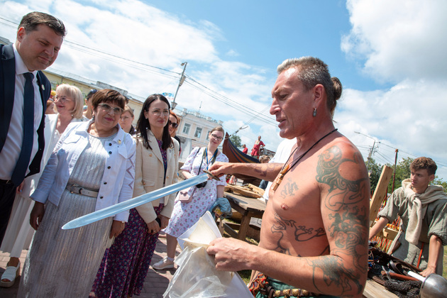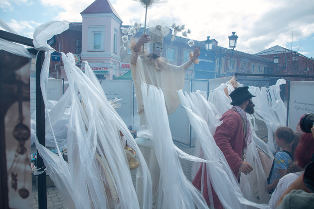 В субботу город был наполнен разнообразными тематическими площадками с интерактивами, музыкой и танцами и даже древнерусской мистикой. Привлекли повышенное внимание три площадки с реконструкциями – гусарская баллада «Давным-давно», «Эпоха Просвещения» и «Пушкин», а локация от исторического клуба «Вареж» удивила своей масштабностью. Необычным вкраплением в праздник стала площадка культуры Китая: жители наблюдали шоу с драконами и танец с веерами.