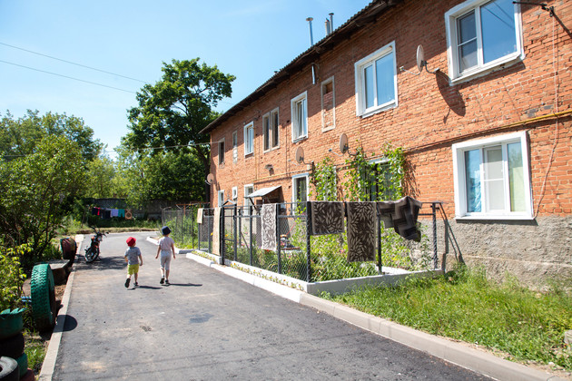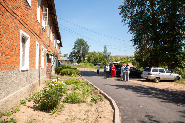 Затем журналисты «ВВ» осмотрели дворовую территорию и проезды на улице 40 лет Октября, у домов № 10 и № 12, отремонтированные по региональному проекту «Благоустроенный двор». Двухэтажные кирпичные дома аккуратно смотрятся посреди нового дорожного покрытия. В свое время они были построены местным шелковым комбинатом, а сейчас находятся в ведении собственников жилья и управляющей компании.