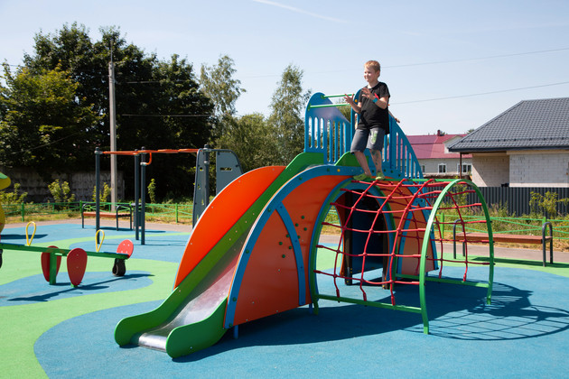 Людмила Михайловна Максименюк пришла на игровую площадку вместе с внуком Сашей. Малыш уже успел оценить все преимущества нового игрового пространства. Под присмотром бабушки он резвится на площадке, которая, к слову, имеет прорезиненное покрытие, а значит, безопасна для детского досуга. Здесь и качели, и карусели, и детская горка, и веревочный городок, позволяющий почувствовать себя настоящим альпинистом.