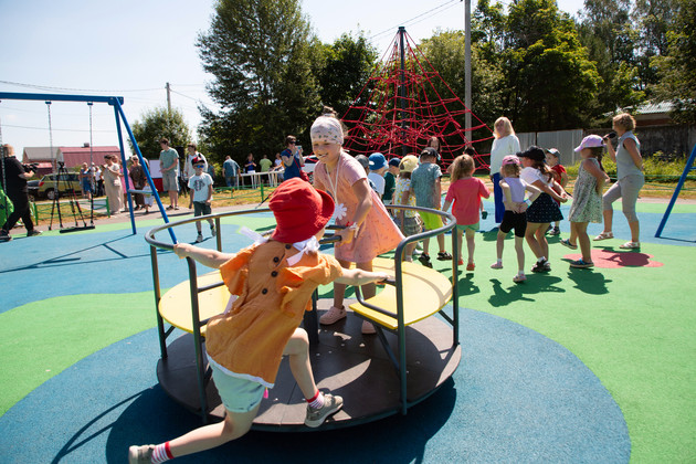 - Конечно, я очень довольна этой площадкой, - говорит Людмила Михайловна. - А как внук доволен! Раньше мы играли во дворе возле дома. Там было не так интересно. Тут совсем другое дело.