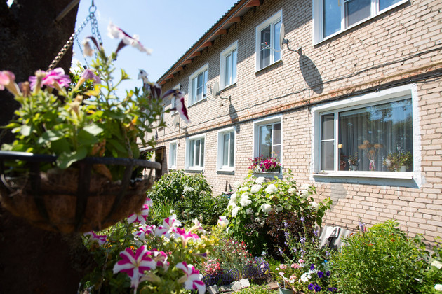 Двухэтажный дом из силикатного кирпича снаружи выглядит вполне ухоженным, несмотря на то, что ему почти шестьдесят лет. Под окнами - цветники, много зелени, обустроены входные группы, установлены пластиковые окна. Но это только на первый взгляд.