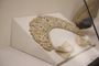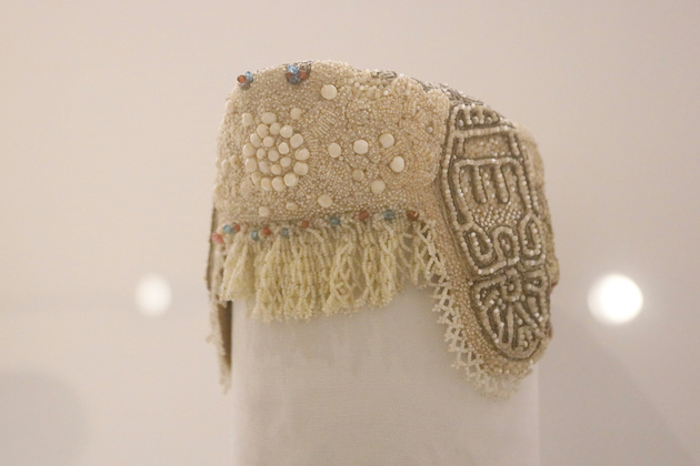 Сотрудник Российского этнографического музея Вера Холодная рассказала о техниках жемчужного шитья. На выставку в ВСМЗ из Санкт-Петербурга привезли 41 экспонат. Это головные уборы, серьги, небольшое количество пуговиц, пояс от костюма донской казачки и одно - единственное кольцо второй половины XIX века. Самая распространенная техника - сажение по бели. Начиная с XV века, как правило, жемчуг нашивается не на ткань, а на настил, выполненный либо из белого шнура в один или два ряда, либо из белых ниток, «бели». Вторая техника - низание, то есть нанизывание жемчуга на нитку без ткани, сквозной сеткой, что имело много общего с кружевной работой и нередко с ней сочеталось. В XVI и XVII веках было очень распространено на древней Руси золотное плетеное на коклюшках кружево. Нередко в кружево вплеталась жемчужная нить.