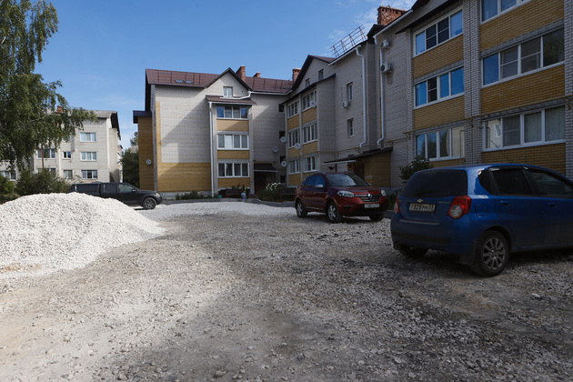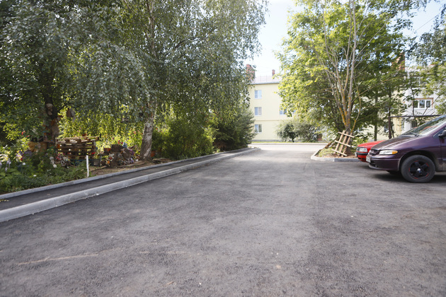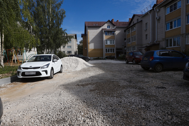 У домов № 11 и № 13 на этой же улице благоустройство в самом разгаре. Уложены бордюрный камень и щебень, появились очертания пешеходных дорожек, а подъездной путь ко двору расширен, чтобы снегоочистительная техника могла беспрепятственно проводить уборку. Правда, асфальтового покрытия пока нет - его положат в ближайшие дни. Кроме того, у дома № 11 оборудована автомобильная стоянка, которая раньше отсутствовала.