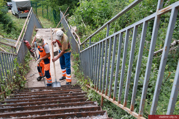 Сразу несколько масштабных объектов приводятся в порядок, сообщает пресс-служба администрации города Владимира. Речь идет о лестницах от переулка Сушкова до улицы Урицкого и с Урицкого на Клязьменскую.