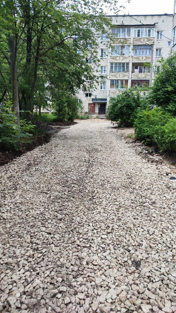 Кроме того, на обширной общественной территории возле домов №5 и №2 на улице Чехова, дома №2 на улице Пугачева (включая проезд между «Сбербанком» и МФЦ, тротуар перед «Домом Быта»), дома №1 на улице Ленинградской была проведена планировка, разметка, выравнивание оснований для асфальтирования проездов и проходов к подъездам.