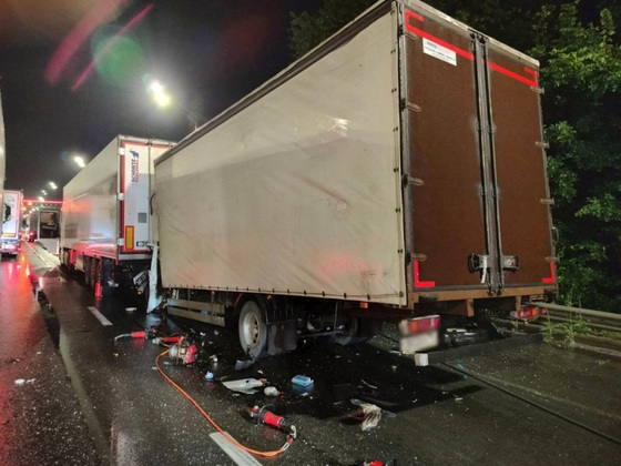 Фургон «Луидор» под управлением гражданина 1963 года рождения двигался по правой полосе движения и, судя по всему, поздно заметил стоящий на светофоре большегруз MAN, за рулем которого был водитель 1996 г.р.