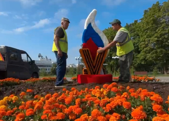 В сквере “Патриот” сотрудники МКУ “Зеленый город” установили новую топиарную фигуру - факел, "олицетворяющий свет, надежду и стремление к новым вершинам", как сообщается в соцсетях владимирской мэрии.