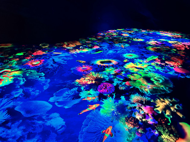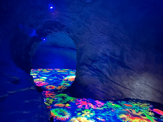А в зоне отдыха для детей оборудован специальный грот. В темной каменной пещере на светящейся напольной поверхности «воссоздан» подводный мир коралловых рифов. На самом деле, это искусное трехмерное изображение, покрытое полимерным составом. Кажется, что ты действительно оказался посреди подводного царства. На стенах - «волшебные ракушки». Если на них нажать, они зажигаются огоньками и издают фантастические звуки. Еще в гроте появятся тематические витражи с подсветкой. За пределами грота - продолжение развлечений: веревочный городок и скалодром. Дети будут в восторге!