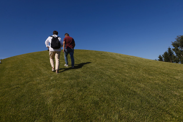 Даже не верится, что под слоем кровельного газона современное пространство со всеми инженерными коммуникациями. Отсюда открывается великолепный вид на панораму Суздаля: очертания Крестовоздвиженской церкви и храма Косьмы и Дамиана в Коровниках, акварельное небо с полупрозрачными облаками и бескрайние просторы города-заповедника.