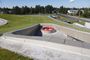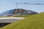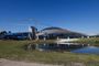 Возле аквапарка располагается искусственный пруд, над которым явно поработали ландшафтные дизайнеры. Высаженная вдоль берега растительность придает водоему естественный вид. Пруд не только ради эстетики, он имеет еще и практическое применение: вода используется для полива кровельного газона. Автоматическая система орошения значительно упростила уход за такой крышей.