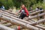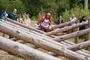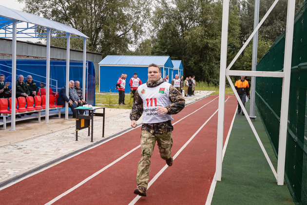 С учетом набранных баллов конкрусанты перешли на второй, уже сугубо профессиональный этап, – лесопожарную полосу. Тут пришлось преодолевать барьеры – перелезать или перепрыгивать через бревна, прыгать по пенькам, имея за спиной увесистый ранцевый огнетушитель с 18-ю литрами воды.