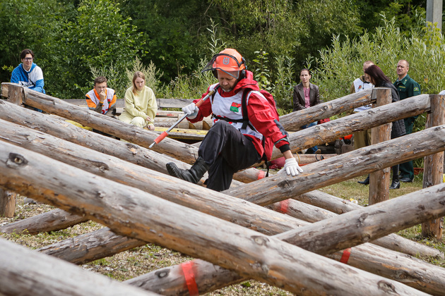 Потом из этого опрыскивателя надо было тушить условный пожар, наполнив водой емкость. (Настоящего огня здесь не применяют). Затем с увесистой мотопомпой в руках пробежать по пересеченной местности дистанцию в 70 метров к «водоему», а также - проявить искусство владения бензопилой, завести мотопомпу и сбить струей воды из нее специальные деревянные мишени. За любую ошибку – штрафные секунды.