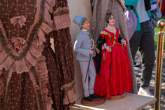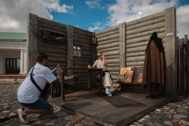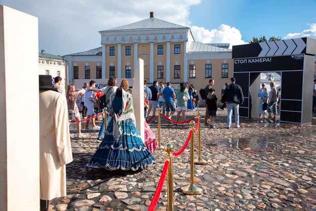 На площадке можно было погрузиться в атмосферу фильмов, прочитать об истории их создания, узнать любопытные факты, сфотографироваться на фоне киношных декораций и даже примерить костюмы героев, которые носили Олег Янковский, Нонна Мордюкова и Инна Макарова.