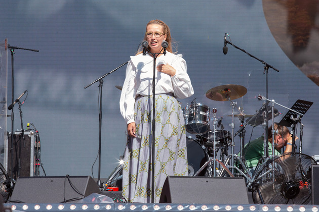 В 14:00 концертные выступления прервались и на сцену на правах хозяйки вышла с поздравлениями глава администрации города Суздаля Алиса Бирюкова.