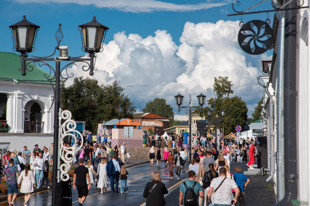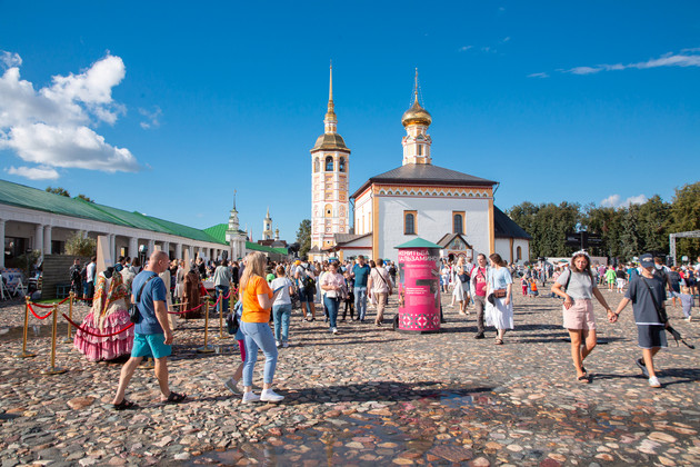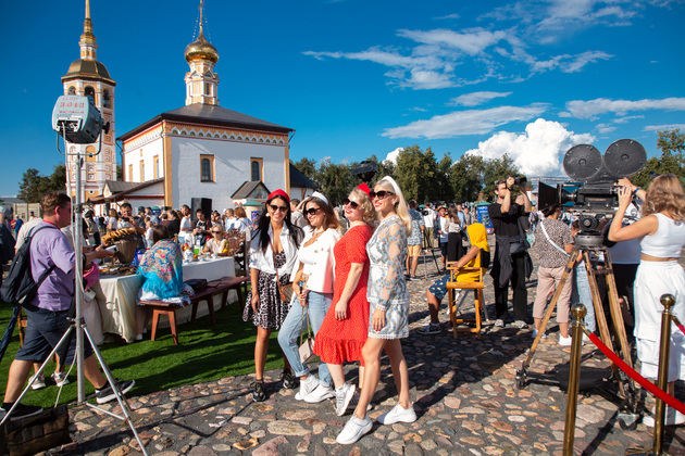 Тем временем публика наслаждалась атмосферой праздника - пускалась в пляс под народные песни и мелодии, с азартом участвовала в веселых конкурсах, поглощала аппетитные яства и любовалась древним Суздалем.
