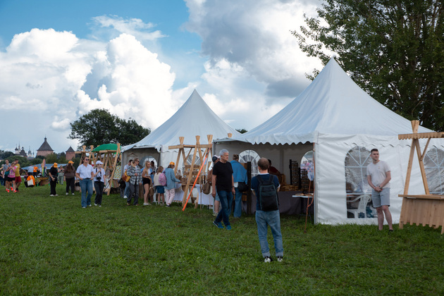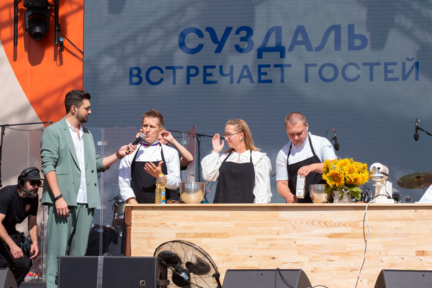 Тут же разместилась гастрономическая площадка межрегионального фестиваля «Тысяча вкусов Суздаля», на которой свою продукцию представили фермеры и рестораторы из Владимирской области и соседних регионов. Можно было попробовать мясные, рыбные и овощные блюда, шашлык, плов, выпечку, фермерские сыры, блюда из суздальских огурцов, салаты, соленья-варенья, крафтовые лимонады.