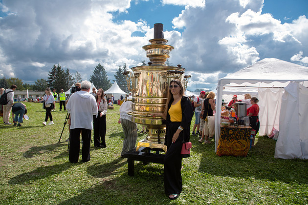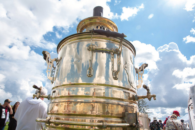 Гвоздем гастрофестиваля стал двухметровый латунный царь-самовар на 300 литров, один из самых больших самоваров России, возле которого организовали массовую церемонию чаепития. На выбор - шесть видов чая.