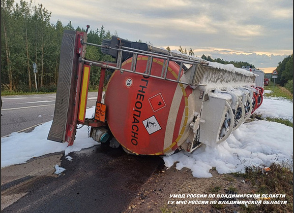 Цистерна потеряла герметичность после удара и топливо разлилось. К счастью, удалось предотвратить пожар, территория вокруг места аварии оперативно была залита пеной силами владимирских спасателей. Продолжается ликвидация последствий ЧП.
