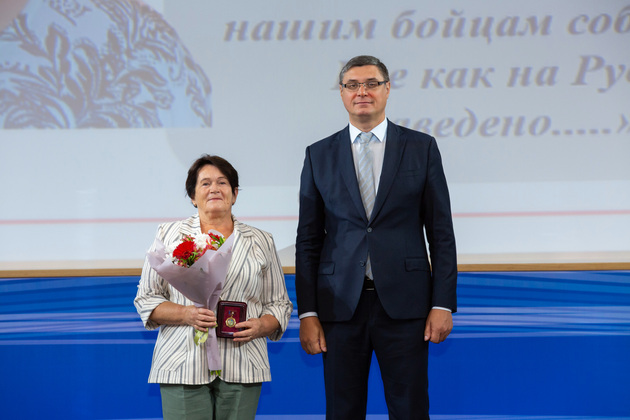 Причем, Геннадий Матвеев участвует в Специальной военной операции, и обязанностям старосты посвящает свой отпуск. Наградные часы из рук губернатора получала супруга Геннадия Ивановича.