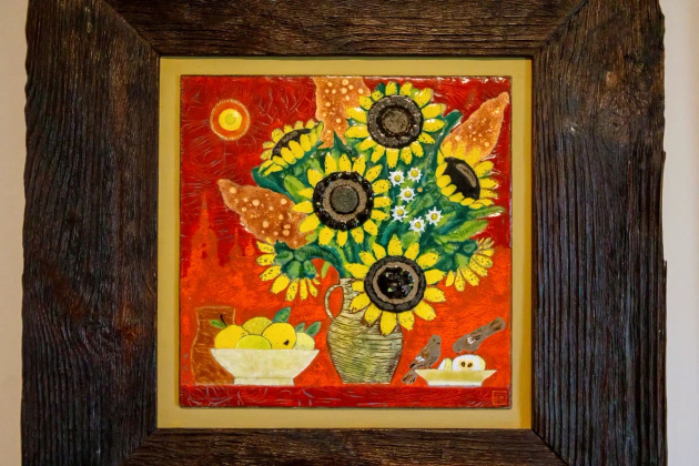 Под воздействием высоких температур эмаль превращается в стекло и приобретает глянцевую поверхность: краски становятся ярче, а образы - выразительнее. Художественные творения на основе горячей эмали сохраняют декоративные свойства веками, краски не тускнеют и не боятся коррозии.