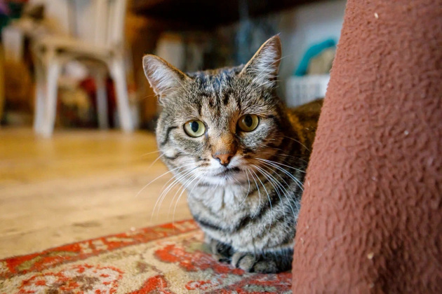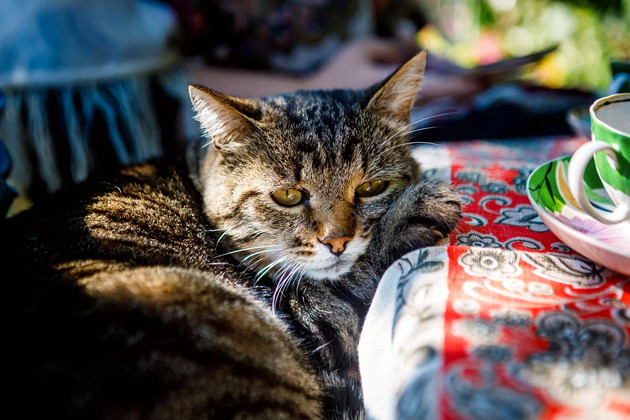На руках у Нади дремлет кот Морсик. Котяра, между прочим, не абы какой: папа ведет родословную от кота художника Олега Модорова, а мама - кошка художницы Дарьи Тимошкиной. Кот шпротного окраса, высокохудожественный!