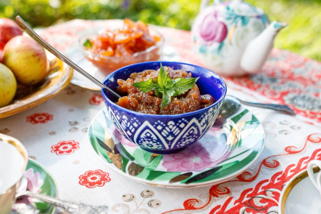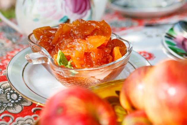 - Как варили варенье? Да очень просто, - делится рецептом Лариса Григорьевна. - Яблоки надо сперва почистить, нарезать дольками, поместить в кастрюлю и засыпать сахарным песком. Когда сахар пропитается фруктовым соком, ставьте емкость на огонь и пару раз доведите до кипения с перерывом, пока сироп не остынет. Вот и всё - варенье готово!