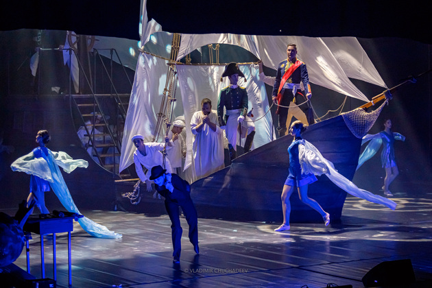 Еще до начала заинтриговало жанровое расширение известного сюжета: «Юнона и Авось» из Крыма была обозначена как рок-опера-балет. Поэтому особенно впечатляющей находкой режиссера-постановщика Владимира Косова стало как бы параллельное действие - вокально-драматическое и хореографическое. И даже образы главных героев - графа Резанова и его возлюбленной Кончиты - исполняют по два артиста в двух измерениях сразу, оперном и балетном.