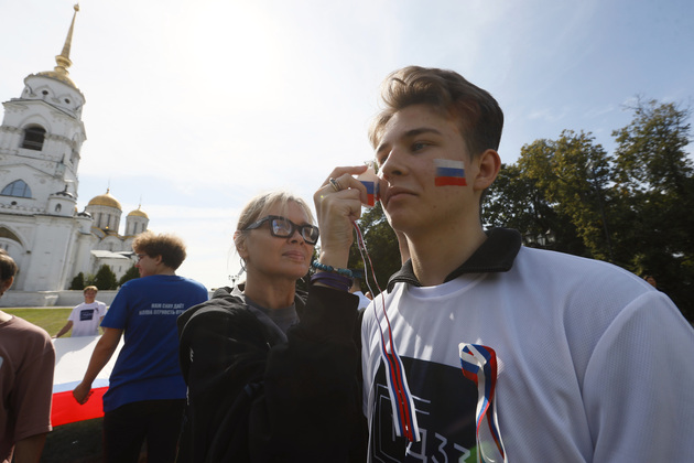 В числе участников патриотической акции - активист «Молодой гвардии Единой России», студент Владимирского филиала РАНХиГС Артем Носков. Он признался, что для него это акция означает единение под флагом России.