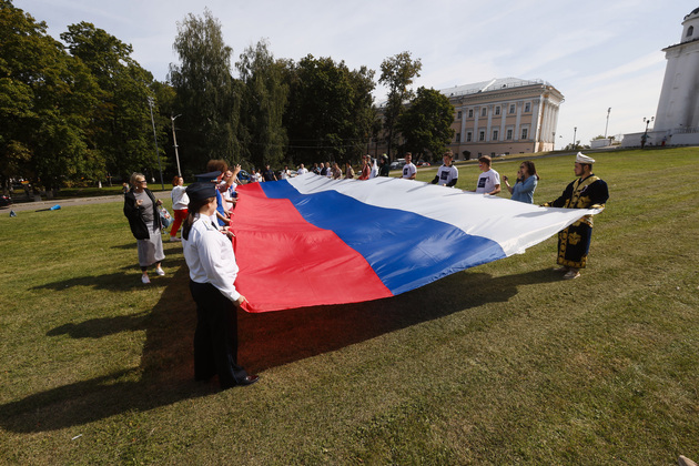 В этот день на Соборной площади города Владимира представители ЗС области, волонтеры и активисты «Молодой гвардии Единой России», а также члены национальных диаспор развернули полотнище российского флага длиной 15 метров и шириной 4,5 метра как символ сильной, неделимой и независимой России, общего дома для людей самых разных национальностей и вероисповеданий.