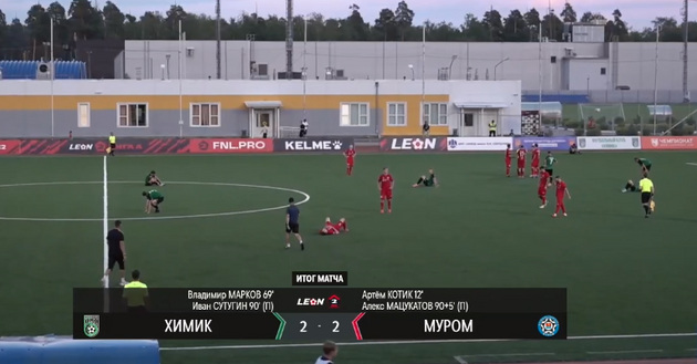 Уже в компенсированное время, «90+», судья зафиксировал нарушение в штрафной «Химика» (по мнению многих болельщиков, весьма спорное решение). Иван Сутугин при исполнении удара переиграл вратаря «Мурома» и счет стал - 2:1. Казалось, «Муром» обречен. Игроки и болельщики «Химика» ликовали.