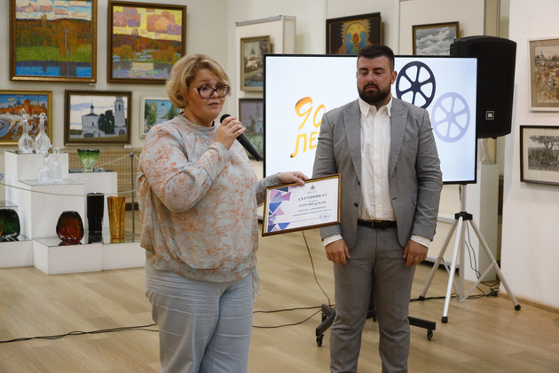 Говоря об истории, нельзя было не сказать о том, что в преддверии круглой даты в оперативное управление Киноцентра был передан кинотеатр «Художественный». Излюбленное место горожан – это теперь тоже часть истории учреждения. Почетным гостем кино-экскурса стал директор «Художественного» Роберт Юрьевич Сергеев, который рассказал участникам торжественной встречи истории из жизни кинотеатра и выразил слова благодарности за работу по восстановлению кинотеатра.