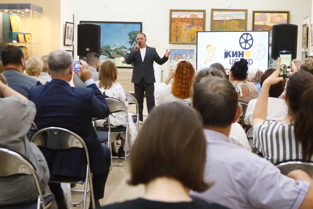 Завершился кино-экскурс выступлением Дмитрия Максимовича Родина, который возглавил учреждение в январе 2024 года. Он рассказал о планах развития и поблагодарил присутствующих гостей.