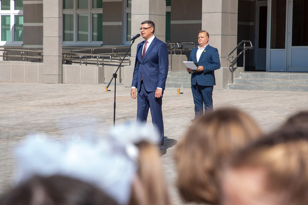 В торжественной линейке поучаствовал губернатор Владимирской области Александр Авдеев. Он осмотрел помещение школы, а затем посетил один из уроков и пообщался с первоклассниками. В гимназии, по словам директора Антона Судьина, созданы все условия для всестороннего развития учащихся. Это и профильные мастерские с оборудованием для работы с деревом и металлом, швейные и кулинарные классы, компьютерные лаборатории и зоны для 3D-моделирования. Каждый класс оборудован интерактивной доской. Кухня и столовая гимназии, рассчитанные на 412 мест, выглядят очень современно и комфортно.