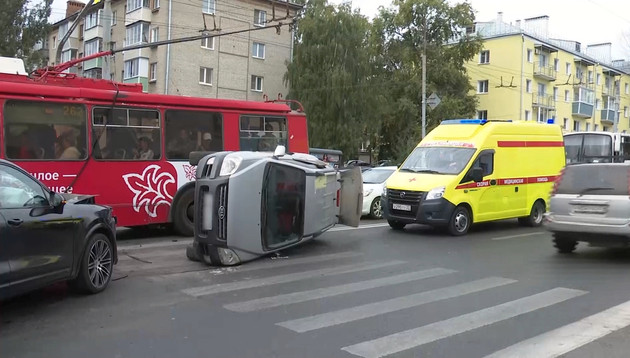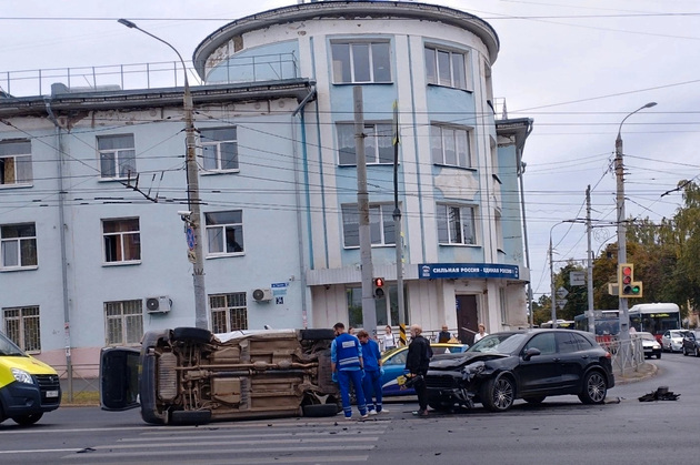 Утром в среду, 11 сентября, на перекрестке улиц Мира и Горького во Владимире произошла авария с участием двух кроссоверов - «Киа Спортейдж» первого поколения и «Порше Кайен». В результате ДТП один из автомобилей оказался перевернут на бок.
