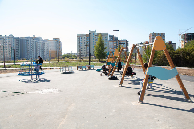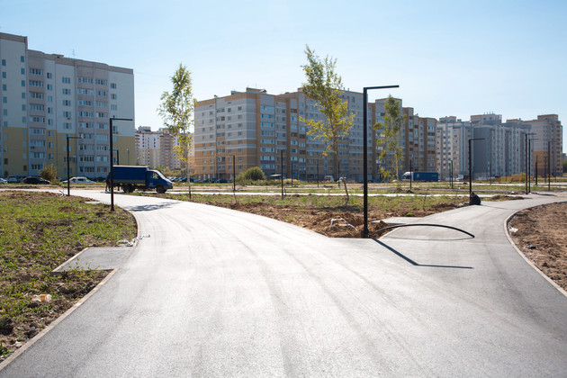 При нас строители укладывали асфальт в основных узлах. Элементы детской площадки уже установлены. Площадка для выгула животных тоже оборудована. Опоры освещения почти все укомплектованы.