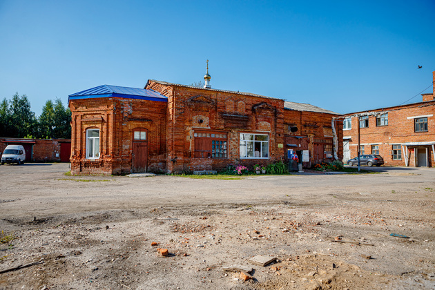 Несмотря на то, что возрождение этого храма идет уже несколько лет, думаю, немногие знают, где он находится. Поделюсь тем, как сам искал его впервые по ориентирам друзей. Это на территории Военного городка. Адрес - улица Красноармейская, 36. За высокой оградой с синими воротами расположена жилищно-коммунальная служба Минобороны. Заходишь на ее территорию - и в глубине хозяйственного двора видишь прямоугольное одноэтажное здание из красного кирпича.