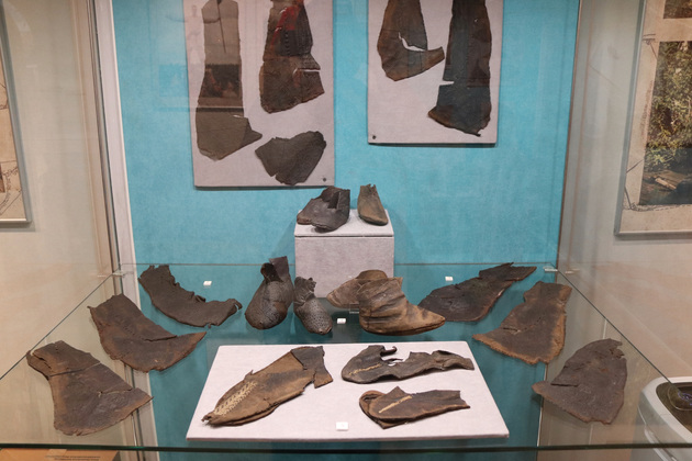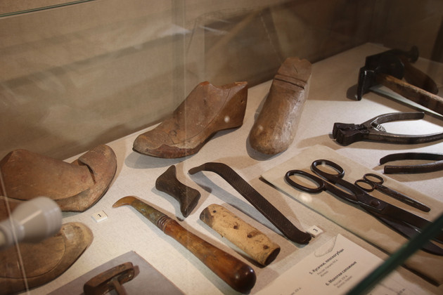 Обувь издревле являлась показателем статуса и достатка. Еще в Древней Руси жители Великого Новгорода вместо лаптей носили красивую и практичной кожаную обувь, которую заказывали у сапожников. Мастерские стали появляться на усадьбах города в XII-XIII вв. Из выделанных шкур рогатого скота изготавливали разнообразную обувь – от простой до богато украшенной разноцветными узорами. Кстати, выражение «шевели поршнями» родом из древности. На выставке поршней много – их использовали и как недорогую обувь, и в качестве калош, чтобы в межсезонье защитить более ценную.