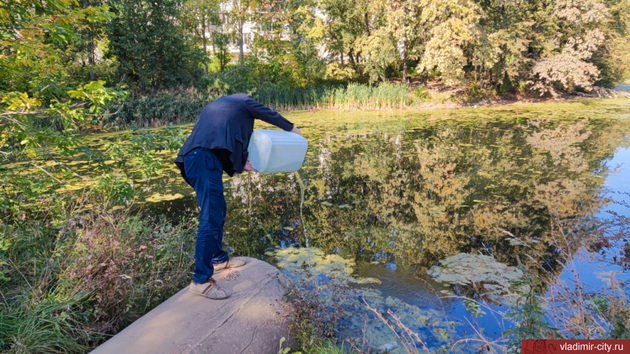 Во Владимире воду в водоемах очищают путём заливки суспензии хлореллы - одноклеточной зелёной водоросли. Сегодня вещество на её основе залили в пруд рядом с домом №215 на улице Добросельской. Ранее подобный метод применили на водоёмах на улице Комиссарова и в микрорайоне Заклязьменский.