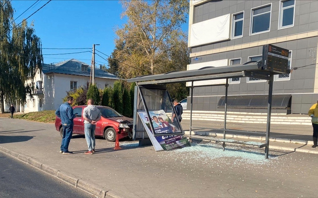 Утром в среду, 25 сентября, на улице Большая Нижегородская водитель автомобиля «Рено Логан» на полном ходу врезался в остановку общественного транспорта «Улица Погодина».