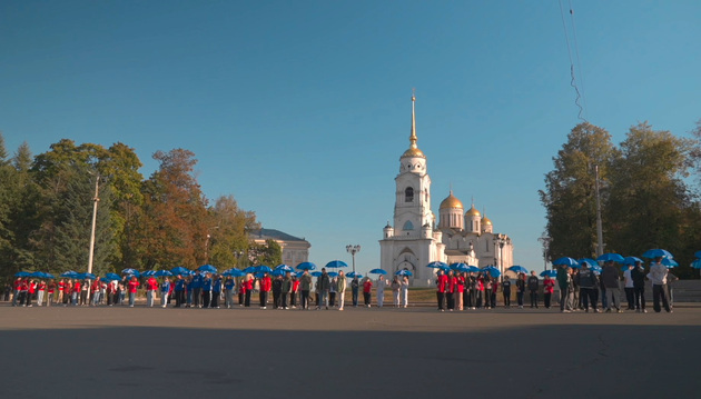 На Соборной площади волонтеры и представители общественных организаций выстроились в форме фразы «Вместе». Акция была направлена на демонстрацию единения жителей Владимирской области с новыми регионами.