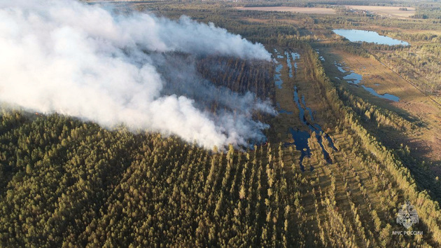 В Рязанской области уже третий день тушат крупное возгорание торфяников. Площадь пожара в настоящий момент превышает 360 гектаров.