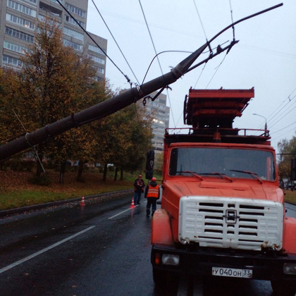Пресс-служба администрации города Владимира сообщает о затруднении движения на улице Верхняя Дуброва. Здесь бетонный столб наклонился над проезжей частью после того, как в него въехал грузовик.