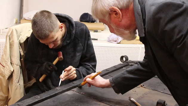 Любая реставрационная работа – это сложно. По мнению Виктора Юрьевича, раритет раньше уже подвергался частичной реставрации. Поэтому была сделана полная переконсервация. Сложность заключается в том, что на вратах использовался и черный, и цветной металлы, что вызывает опасение возникновения коррозии. В результате будет проведена двойная консервация в местах клепок и креплений.