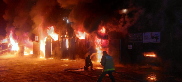 Полыхал автосервис. По прибытии на место вызова стало очевидно, что возгорание заметили поздно. Здание все было охвачено огнем.