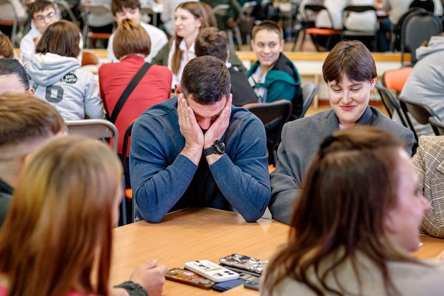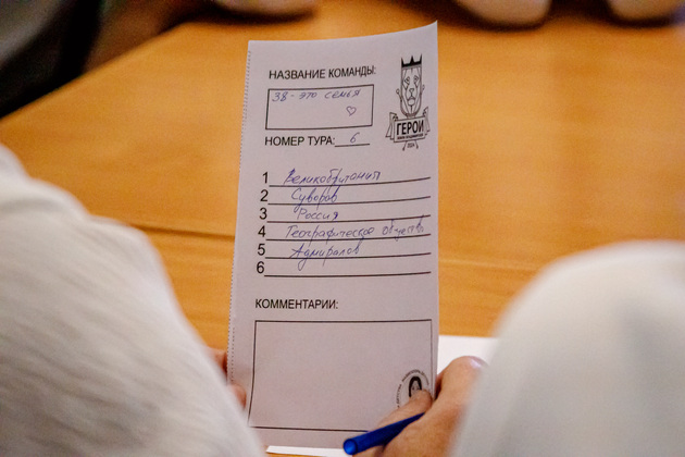 Каждый из раундов – тематический. В первом туре участникам предложили размяться и выбрать ответ из четырех предложенных. Здесь нужно было подключать логику и интуицию. Вопросы самые разные: назвать дату исторического события, продолжить цитату героя, сколько было лет сыну Александра Невского, когда его отправили на княжение, или, например, в честь чего назван поселок Бег? Всего на разминку дали шесть вопросов.