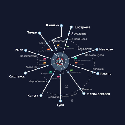 Планируется существенно сократить интервалы движения пригородных поездов и обновить подвижной состав. Сейчас жителям Калуги, Тулы, Рязани, Твери, Владимира приходится ждать пригородного электропоезда от 45 минут до трех часов. Примерно через десять лет предполагается, что между столицей и областными центрами пригородные поезда в часы пик будут ходить каждые 20-30 минут.
